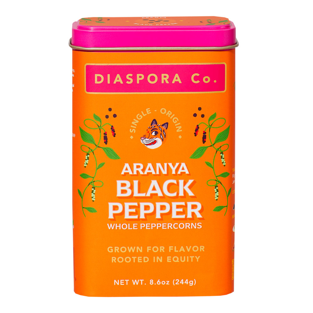 A combination of over 10 indigenous, wild and heirloom pepper varieties, this Aranya blend is layered and complex with a fruity heat. Vine ripened and hand harvested from a family farm in Kerala, India, these peppercorns have an intense, concentrated flavor and yet are still versatile enough for any dish. Choose from two different sizes: the standard, everyday tin and the larger, chef-sized tin.