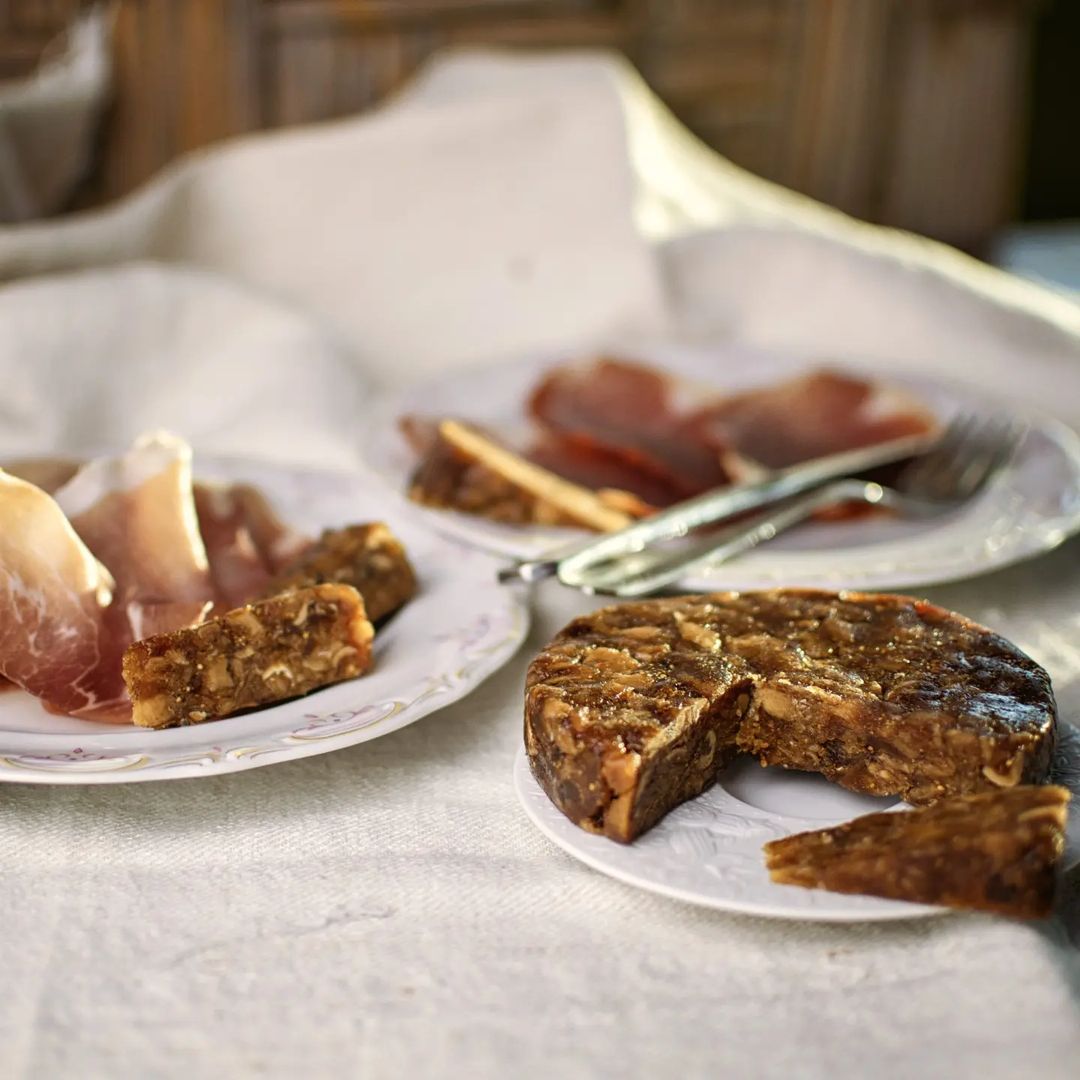 Fig fans will love this dense, chewy and sweet cake made solely from succulent Dottato of Consenza DOP figs. The southern Italian region of Calabria is famous for this fig variety which are prized for their honey-sweet aroma, juicy flesh and tiny seeds.