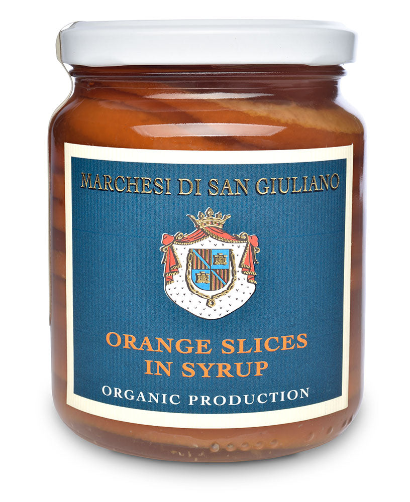 Organic Orange Slices from Marchesi di San Giuliano add elegance straight out of the jar. Use the whole orange rounds as a garnish for cakes, from cheesecakes to traditional Cassata Siciliana (a classic Sicilian sponge cake filled with lightly sweetened ricotta cream, wrapped in marzipan and garnished with candied fruit). Or use the whole orange slices as a base for orange upside-down cake.