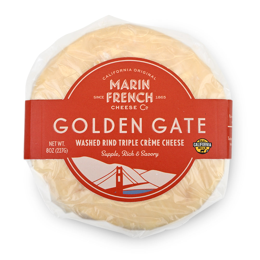 Named after San Francisco’s famous bridge, this triple crème gets its striking orange-red color from being hand-washed in brine for two weeks to attract local yeast, imparting a unique flavor unlike anything else. Golden Gate has a complex profile that’s sweet, creamy and savory, but is still considered mild and approachable for a washed-rind cheese. Fudgy and brie-like in texture, Golden Gate is a great addition to any cheese board.