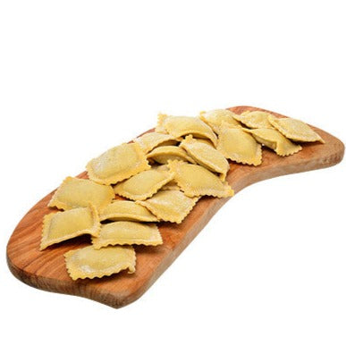 Filled with a blend of ricotta, asiago, parmesan and flecks of real truffle, these fresh ravioli are packed with savory, umami richness. Toss with your favorite extra virgin olive oil or good quality butter and top with Parmigiano-Reggiano shavings.