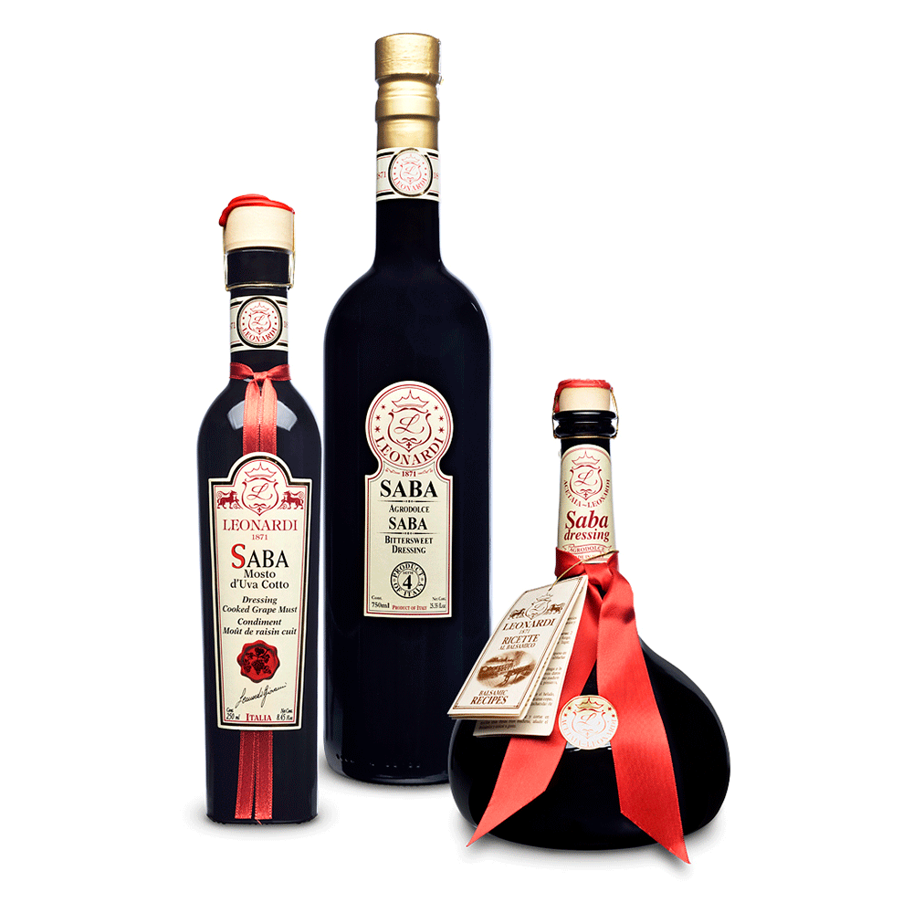 Did you know that Saba Balsamic Dressing is not technically balsamico at all? This versatile condiment—made by renowned balsamic producers Acetaia Leonardi or Modena, Italy—starts with Trebbiano and Lambrusco grapes that are cooked for 36 hours in open copper vats until it reduces by two-thirds, concentrating the grape must to a sweet syrup.