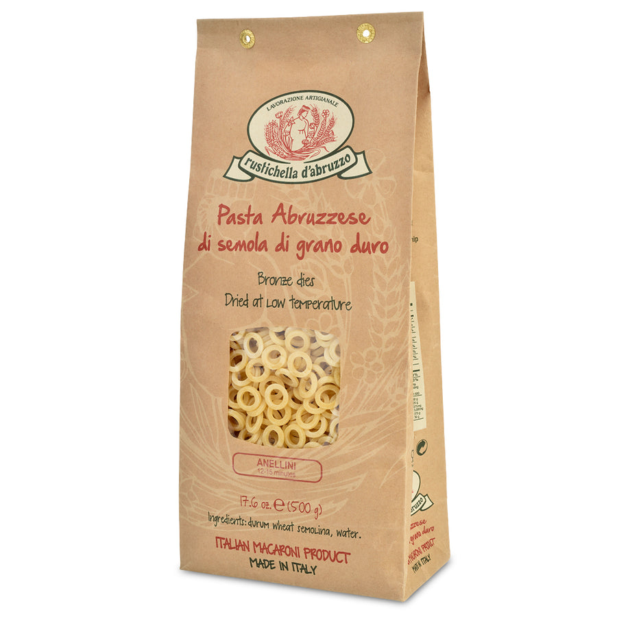 Anellini, meaning "small little rings" in Italian, is one of the first pasta shapes that children learn to eat in Italy. But these fun pasta circles aren't just for kids. In fact, Italians also use anellini to prepare timballo, an impressive celebratory dish in which pasta, meat and cheese are layered in a bowl-shaped pan, baked and then (tada!) inverted to reveal a dome-shaped delight. Of course, anellini are also excellent in simpler preparations. Try them in soup or, for a homemade take on SpaghettiOs, with a Bolognese or simple tomato sauce.